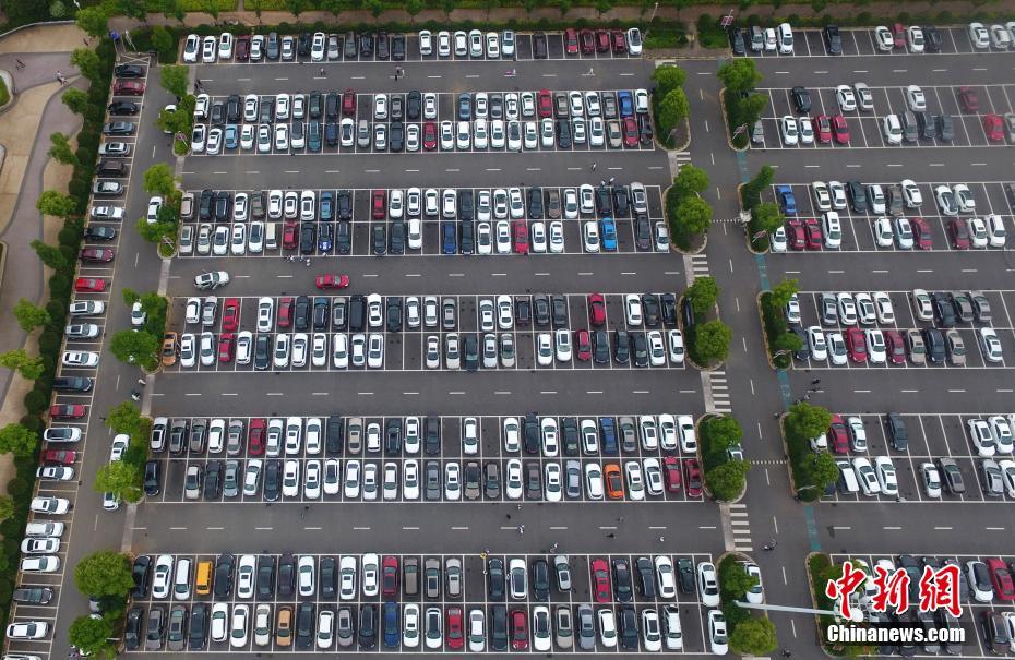 4月29日,密密麻麻的汽车停放在江西南昌万达文化旅游城的大型停车场上,从空中俯瞰停车场犹如电路板,十分壮观。当日是“五一”小长假第一天,中国各大景点迎来旅游高峰。中新社记者 刘占昆 摄