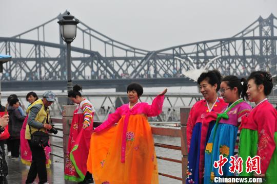 5月1日,“五一”假期,辽宁丹东迎来了大量游客,鸭绿江边游人如织。辽宁省丹东市与朝鲜新义州市隔江相望。来自全国各地的游客云集鸭绿江畔看朝鲜风光,沿江景区游客爆棚。游客穿着朝鲜民族服装在拍照。 于海洋 摄