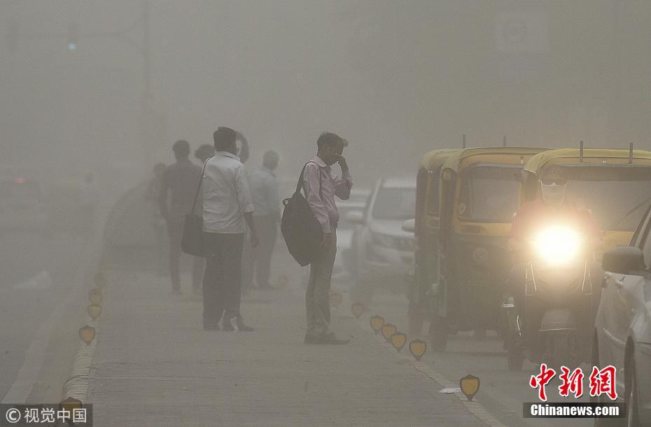 目前,有关沙尘暴造成的死亡人数有不同的说法。法新社报道称,官员表示已经有77人在沙尘暴中遇难,143人受伤。印度当地媒体《印度斯坦时报》则称沙尘暴导致68人死亡。《印度时报》则称有27人死亡,100人受伤。图为新德里街头黄沙漫天,人们等着过马路。 图片来源:视觉中国