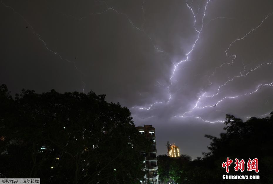 与沙尘暴一起袭击印度西部的,还有雷暴天气。当地时间5月2日晚,印度西部拉贾斯坦邦多个地区遭暴雨袭击,目前已导致20多人死亡、60多人受伤。图为新德里郊外,天空上布满闪电。