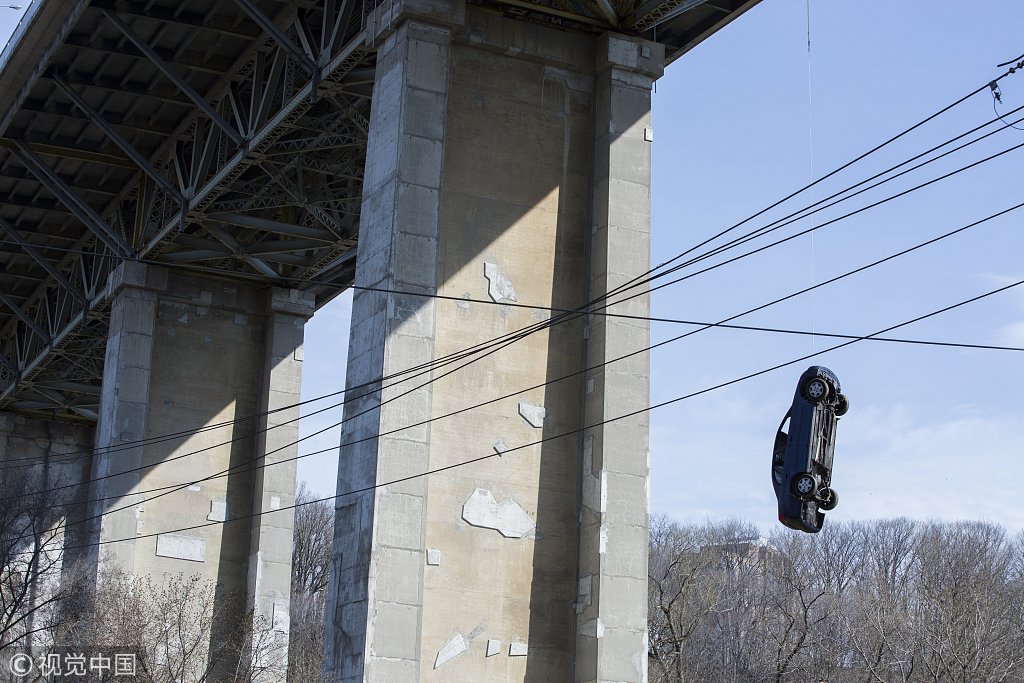 拍电影?加多伦多大桥上悬挂神秘汽车 让人抓狂