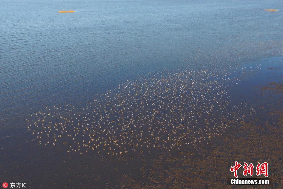 青岛环湾湿地迎上万只黑腹滨鹬过境 十分壮观