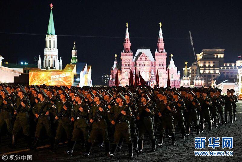 俄胜利日阅兵临近 士兵在红场连夜彩排