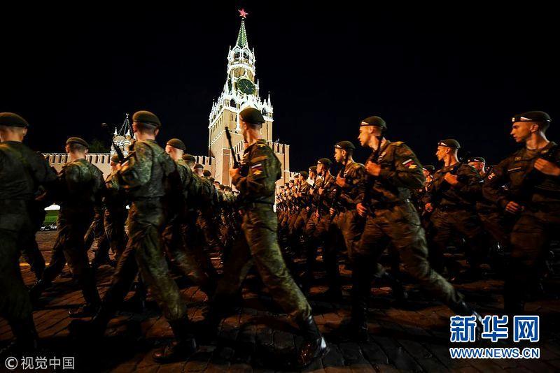 俄胜利日阅兵临近 士兵在红场连夜彩排