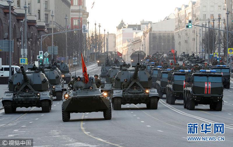俄胜利日阅兵临近 士兵在红场连夜彩排