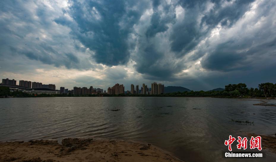 强对流天气来临前的江西新余市孔目江国家湿地公园上空风云变幻。赵春亮 摄
