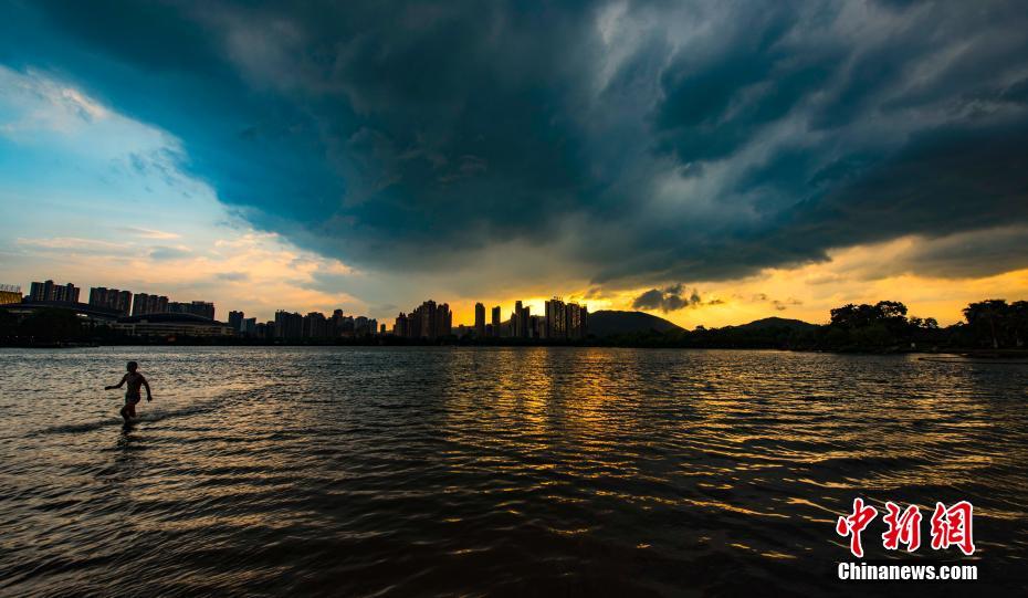 5月6日傍晚,强对流天气来袭前的江西新余市孔目江国家湿地公园上空风云变幻,水天相映共同构成绚烂景象。江西省气象台于当天16时30分变更发布雷电黄色预警信号,新余市当地有雷电活动,局地伴有雷雨大风等强对流天气。赵春亮 摄