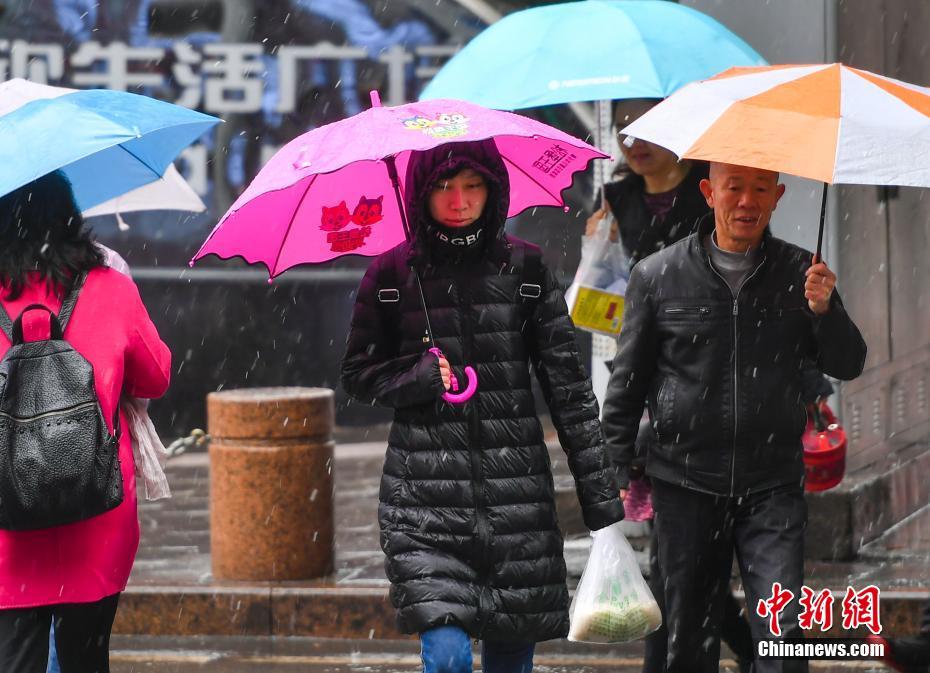 5月7日,受强冷空气影响,新疆乌鲁木齐市迎来一轮雨雪天气,气温降至0摄氏度左右,市民纷纷穿上冬装出行。乌鲁木齐市气象台5月7日10时20分发布暴雪黄色预警:城区已出现大量雨转雪,预计白天降雪还将持续,大部区域将出现累计12毫米以上的暴雪。中新社记者 刘新 摄