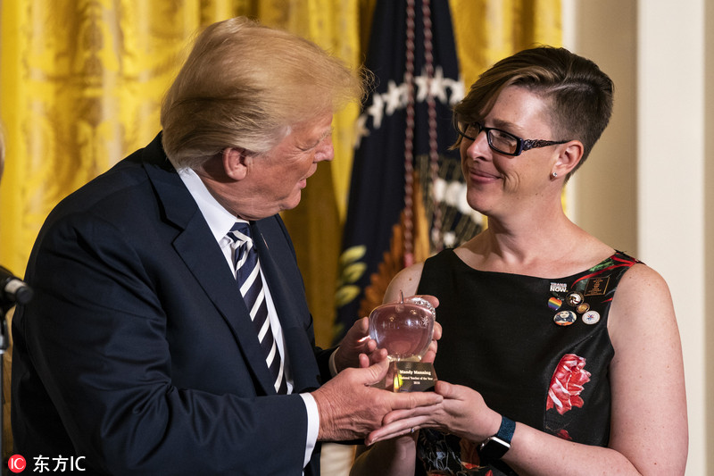 当地时间2018年5月2日,美国华盛顿,美国总统特朗普在白宫向年度最佳教师Mandy Manning颁奖。