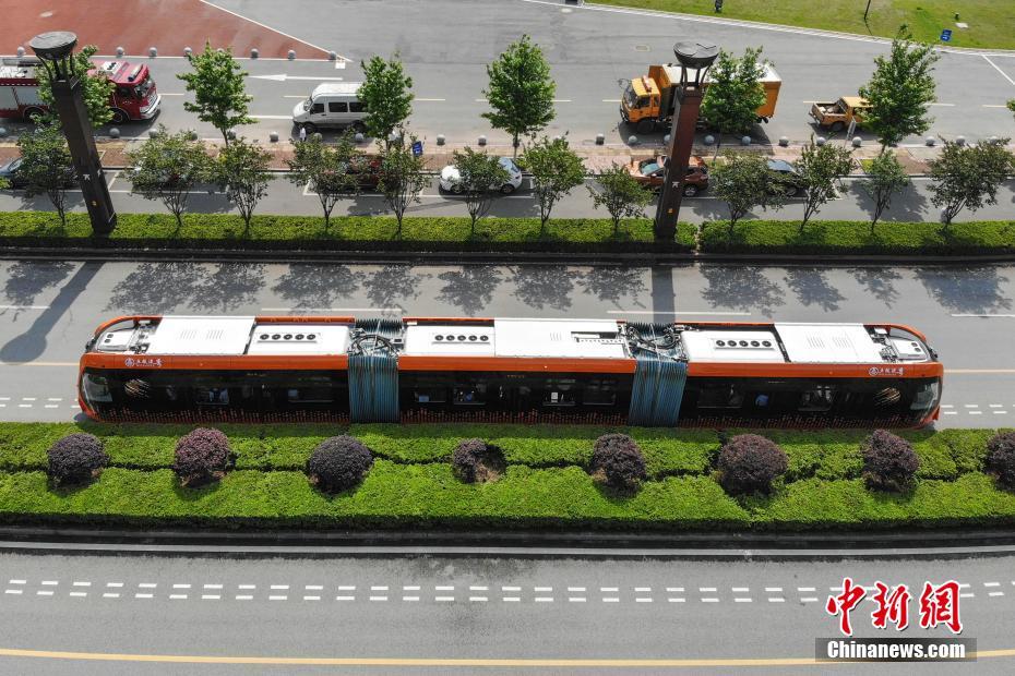 5月8日,在有着“中国电力机车之都”美誉的湖南株洲城区,全球首条智能轨道快运系统示范线--株洲智轨A1线路(首期)开通试运行。该示范线的智轨电车每次充电时间为10分钟,续航里程最高可达25公里,并以胶轮取代钢轮,无需铺设有形轨道,最小转弯半径仅15米,可在城市道路上灵活行驶。 杨华峰 摄