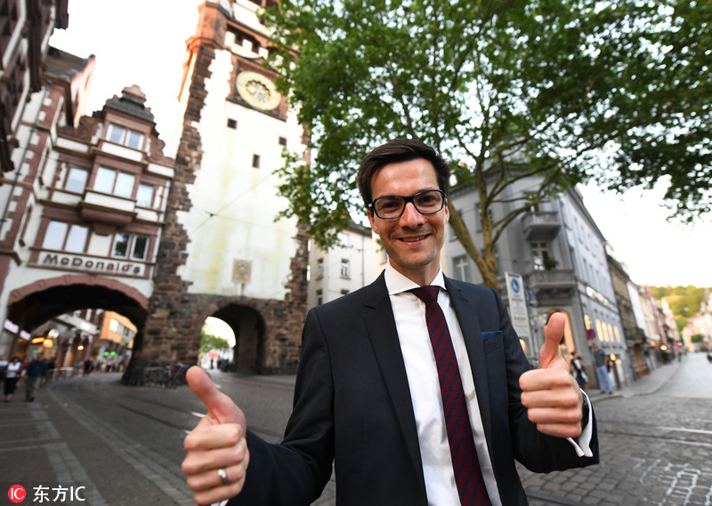 德国弗莱堡新市长庆祝当选被揍 鼻青脸肿