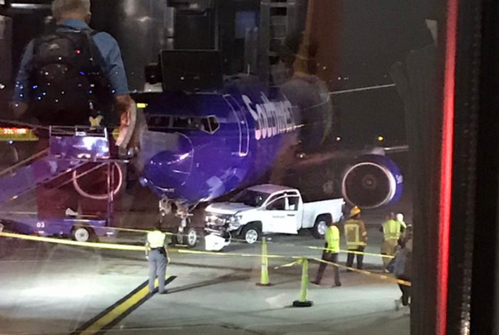 西南航空公司客机与地面车辆相撞。(图片来源:CBS)