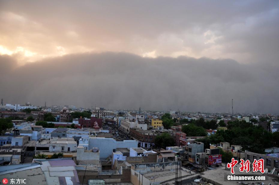 印度沙尘暴来袭瞬间 移动的"沙墙"吞噬城市