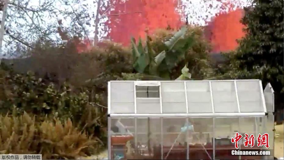 夏威夷火山喷发持续 居民拍到岩浆从后院中喷出