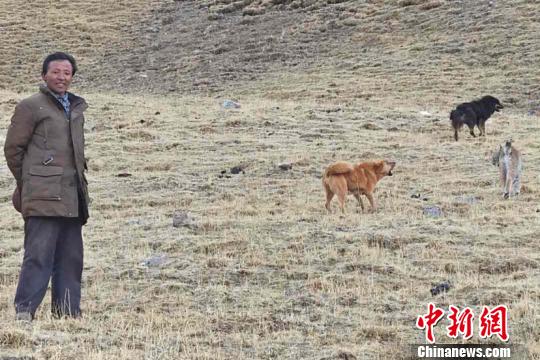 近日,青海省玉树藏族自治州杂多县扎青乡地青村2名牧民管护员在巡山时,发现国家二级保护动物—猞猁在觅食时被3只流浪狗“包围”,猞猁因害怕,站在石头上不敢下来,2名管护员及时采取解救措施,驱逐流浪狗离开,为猞猁开通了进山道路。图为被流浪狗“包围”的猞猁。 东然加少 摄