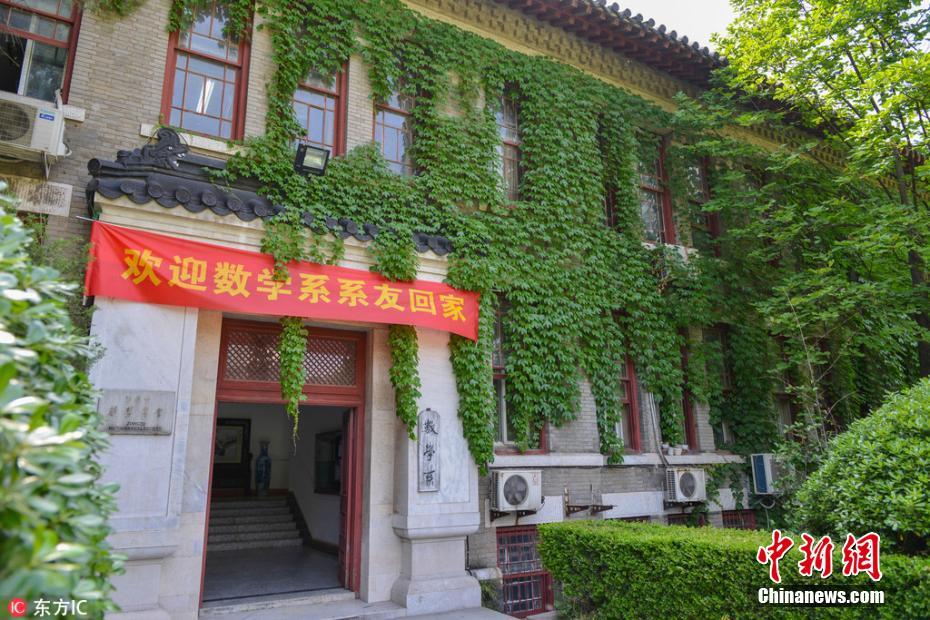 南京大学百岁爬山虎枝叶满墙 绿意盎然令人神往