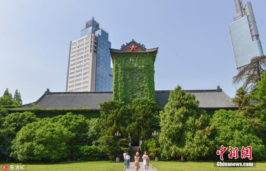 5月8日,初夏时节,南京大学北大楼上被爬山虎紧紧缠绕,仿佛裹上一层绿色的外衣,满墙的爬山虎紧紧依附着墙面,以一种宁静的力量和喜悦的生长姿态,爬得轻灵而缓慢,轻吐岁月的恬静和悠然。中西合璧建筑风格的北大楼建于1917年,同年爬山虎开始生长,至今已过百年。方东旭 摄 图片来源:东方IC 版权作品 请勿转载