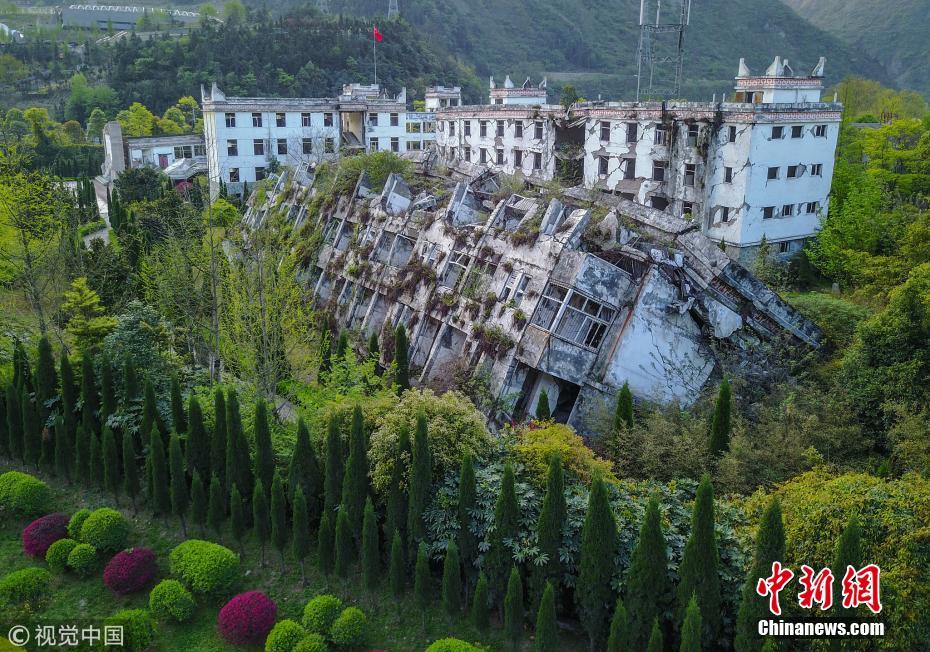 作为全世界唯一整体原址原貌保护的地震灾难遗址区,北川老县城迎来的不只是民众的凭吊和祭奠,还会有各国的地质科考人员,对地震学、地质学、应急救援技术进行详尽研究。图为映秀漩口中学遗址外围如今已被绿化带覆盖。 张由琼 摄 图片来源:视觉中国