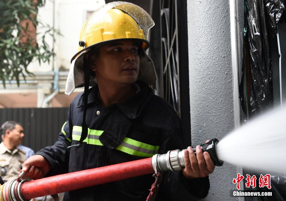 5月9日11时许,柬埔寨金边市桑园区晚景岗一分区288路住宅区一间两层楼的日式KTV餐厅突发大火,当局至少出动10辆消防车紧急赶往灭火。目前现场未发现人员伤亡,起火原因不详。 中新社记者 黄耀辉 摄