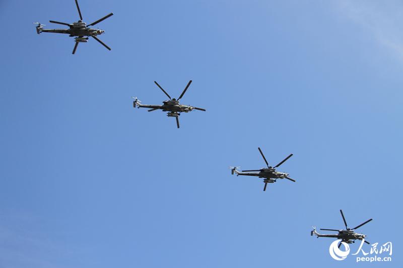人民网莫斯科5月9日电 (记者 华迪) 当地时间5月9日10时,庆祝5.9胜利日暨伟大的卫国战争胜利73周年阅兵式在莫斯科红场盛大举行。今年的胜利日阅兵除了受阅军队和传统武器装备外,还首次展示了作战机器人、无人机等新型装备,开创了俄罗斯阅兵史“无人化”的先河。俄罗斯国防部消息此前表示,本次展示的新型武器绝大多数都是经过叙利亚实战检验的。其中,“海盗”系列攻击无人机作战系统是俄罗斯首次展示的国产攻击无人机。“天王星”系列战斗机器人——“天王星-6”扫雷机器人和用于远程侦察及为士兵提供掩护和火力支援的“天王星-9”作战机器人因在叙的军事行动中表现出色而尤受关注。配合坦克作战、为装甲部队提供火力支援、素有“终结者-3”之称的BMPT坦克支援车当属装甲方队中的“新面孔”。而已成为传奇的“阿玛塔”坦克更是以新面貌出现在观众面前。此外,专门用于在极地作战的“战斗雪橇”也在阅兵式上首次亮相。空中装备方面,俄罗斯总统普京今年3月在国情咨文中首次公开的“匕首”超高音速武器在米格-31K的搭载下震撼登场。另外,两架苏-57第五代战斗机身着数码迷彩涂装飞过莫斯科红场上空接受检阅。