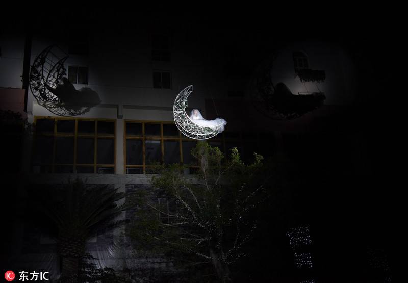 2018年5月9日,杭州一酒店为一对新人量身定制了一场以“飞行”为主题的童话婚礼,新娘从40米高空吊威亚“飞行”入场,体验飞翔的乐趣。