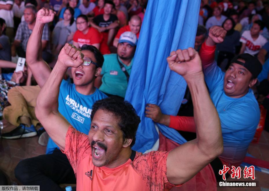 1925年12月出生的马哈蒂尔是本届大选中最年长的候选人,1981年至2003年担任总理22年,是马来西亚任职时间最长的总理。担任总理期间,他致力于发展经济和国家现代化建设,至今仍得到许多马来西亚人尊敬。图为马哈蒂尔的支持者们庆祝大选获胜。