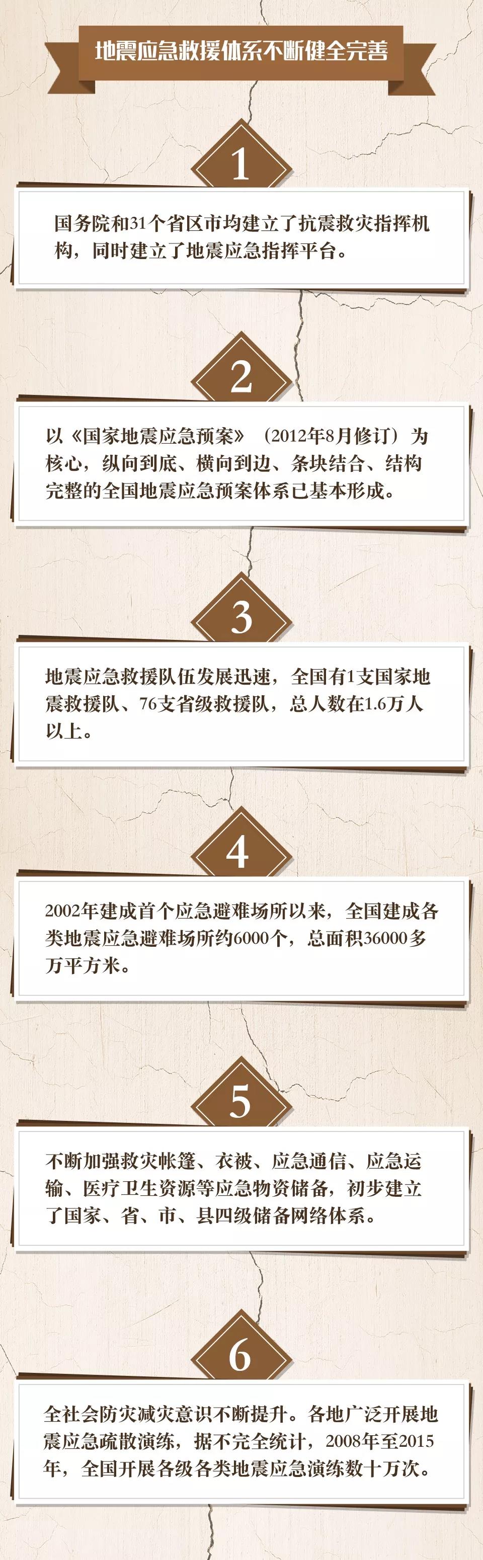 具体到地震应急救援,从四川汶川到青海玉树,从四川芦山到云南鲁甸,我国的地震应急救援体系经过一次次灾难的考验和磨砺,在反应速度、物资准备、技术装备、联动机制等诸多方面不断健全完善,推动着救灾效率的提升。