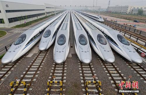 资料图:高速动车组准备出厂投入运营。(中新社记者 徐崇德 摄)