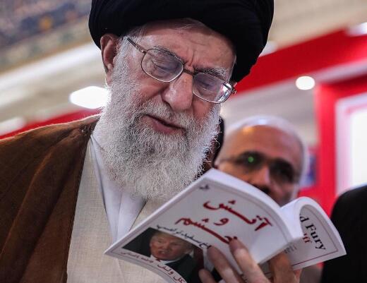据美国CBS新闻和《国会山报》报道,从伊朗最高领袖在社交媒体上晒出的这张照片可以看出,他当时正在聚精会神地阅读波斯语版本的《火与怒:特朗普白宫内幕》。这本书在2018年1月一经问世,就在亚马逊上位列畅销榜榜首。英国BBC新闻的记者哈迪尼利称,照片是在今年的德黑兰国际书展上拍摄的。