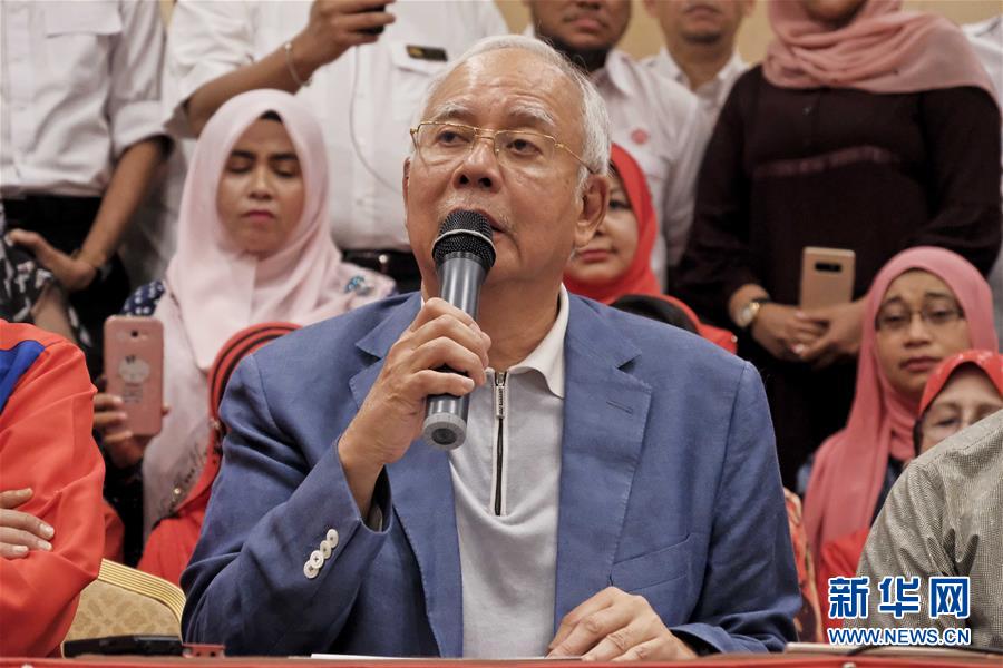 5月12日,在马来西亚吉隆坡,刚刚卸任的马来西亚前总理纳吉布(前中)出席新闻发布会。纳吉布当日宣布为大选结果承担责任,立即辞去马来民族统一机构(巫统)主席和原执政联盟国民阵线(国阵)主席职务。 新华社发