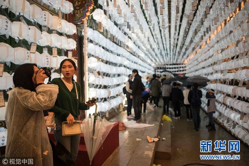 5月12日,韩国首尔,民众冒雨参加莲花灯游行,迎接佛诞节。(图片来源:视觉中国)