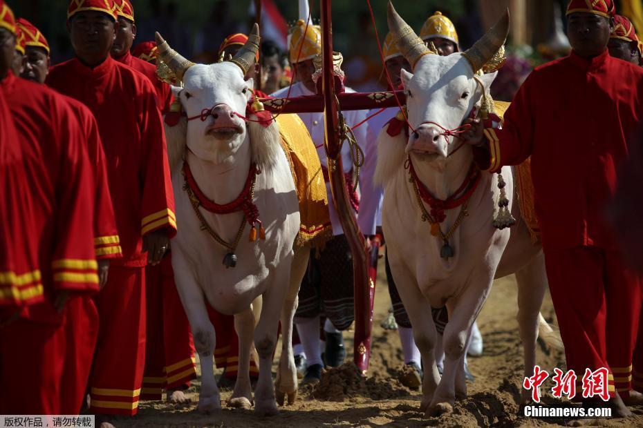 当地时间2018年5月14日,泰国曼谷,泰国传统春耕节在皇家田广场开幕,泰国农民在现场播撒稻种,寓意好运与丰收。春耕节,是泰国的盛大节日,一个祈祷风调雨顺、农业丰收的节日。在每年五月举行。节日始于素可泰王朝,历史悠久。