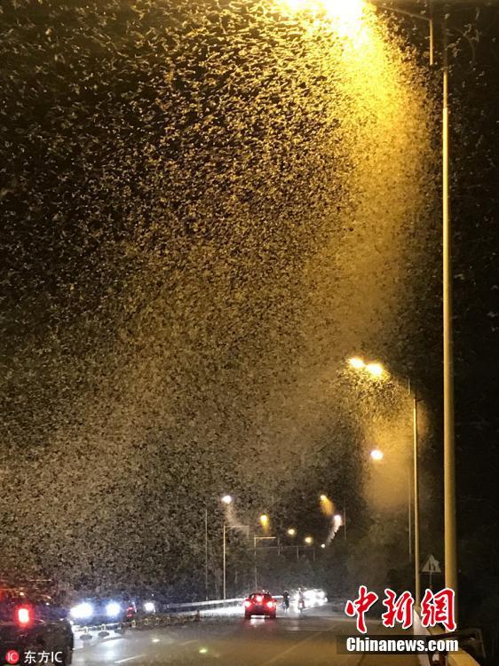 海南琼海现大量蜉蝣飞舞 密密麻麻如雨点砸落