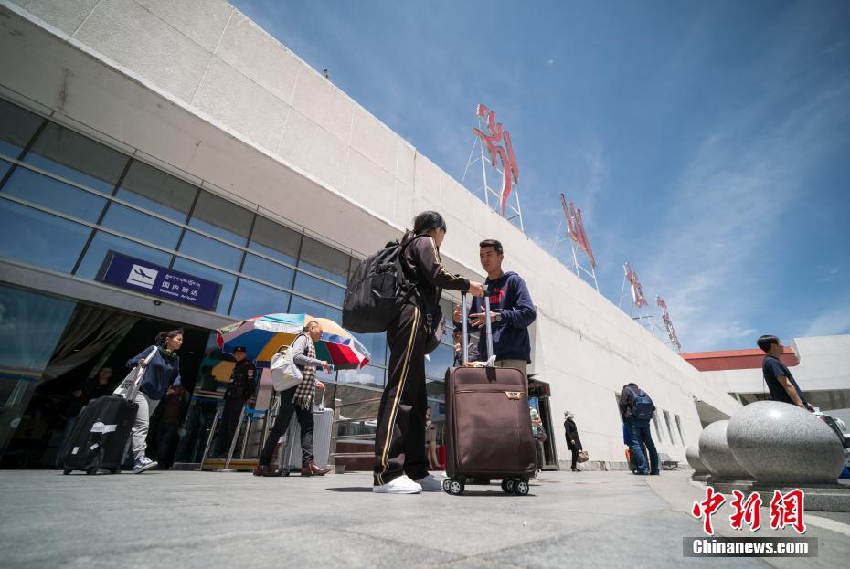 5月14日,3U8633重庆至拉萨航班因机械故障备降成都。此后,川航安排3U8695执行成都至拉萨航班。该航班已于14时许抵达拉萨贡嘎国际机场,部分旅客顺利抵藏。图为原3U8633航班旅客抵达拉萨贡嘎国际机场。中新社记者 何蓬磊 摄