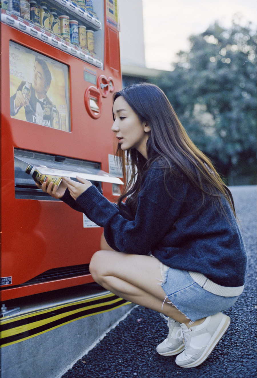 近日,娄艺潇曝光一组街景写真,身着oversize藏青色长袖针织衫搭配蓝色牛仔短裙,长发披肩,素雅恬静与街景完美融合。上长下短、上热下冷的穿搭使整个造型具有层次感,视觉反差之余,更多了一丝俏皮。照片中,娄艺潇或蹲于贩售机前取饮料,或侧身微笑面对镜头,率真亲切,邻家小姐姐即视感扑面而来。