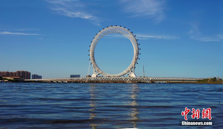 位于山东潍坊滨海区白浪河入海口处的世界最大无轴式摩天轮“渤海之眼”5月16日正式投入使用。据工作人员介绍,“渤海之眼”摩天轮采用桥梁与摩天轮结合的形式,横跨白浪河,大桥全长540米,摩天轮矗立大桥中央,直径125米,总高度145米,有36个轿厢,每个轿厢能够坐8到10人,运行一周约需30分钟。游客除了乘坐摩天轮欣赏旖旎的海河风光,桥下空间还精心准备了五项顶级室内游乐项目。文/王勇钢 袁彦奎 图/袁彦奎