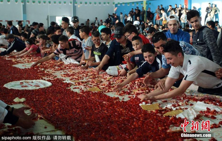 阿尔及利亚诞生世界最大草莓派 长度近50米
