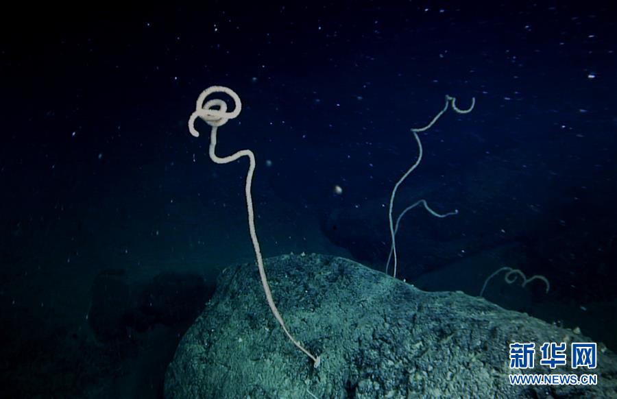 南海甘泉海台的冷水珊瑚群(5月15日摄)。正在执行我国“南海深部计划”西沙深潜航次任务的科学家,乘坐我国自主研制的4500米载人深潜器“深海勇士”号,在南海甘泉海台首次发现冷水珊瑚群,具有重要的科学研究价值。新华社记者 张建松 摄 图片来源:新华网