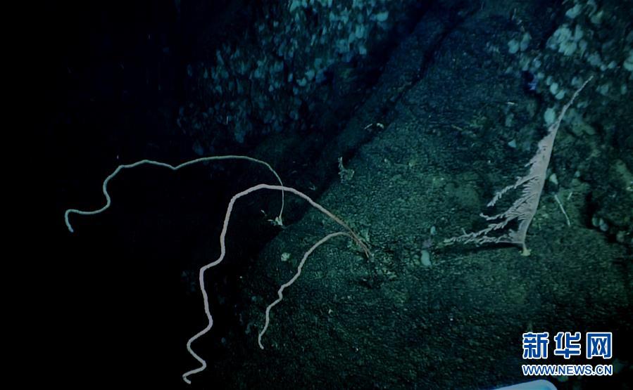 南海甘泉海台的冷水珊瑚群(5月15日摄)。正在执行我国“南海深部计划”西沙深潜航次任务的科学家,乘坐我国自主研制的4500米载人深潜器“深海勇士”号,在南海甘泉海台首次发现冷水珊瑚群,具有重要的科学研究价值。新华社记者 张建松 摄 图片来源:新华网