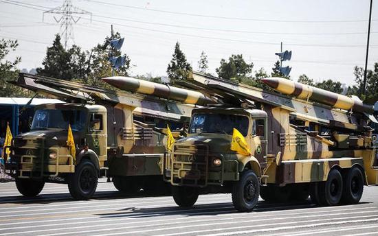 阅兵式上的伊朗导弹方队。