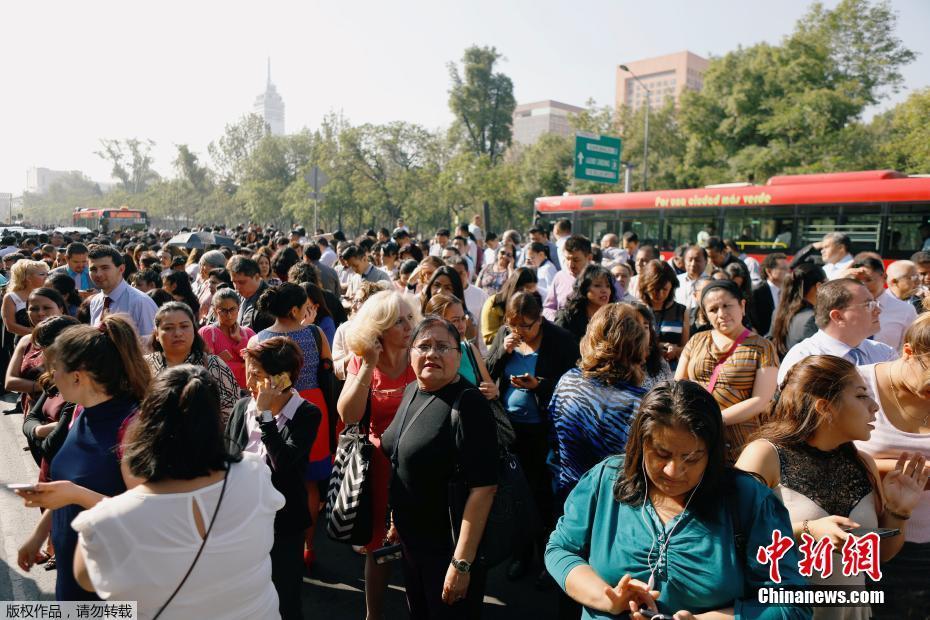 本次地震并未造成人员伤亡,墨西哥城社会秩序正常。图为墨西哥城街头避难的民众。