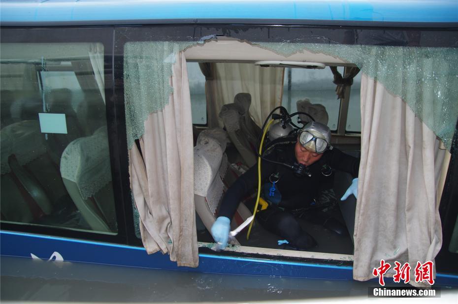 潜水员在大巴车内部查看情况。路宽 摄