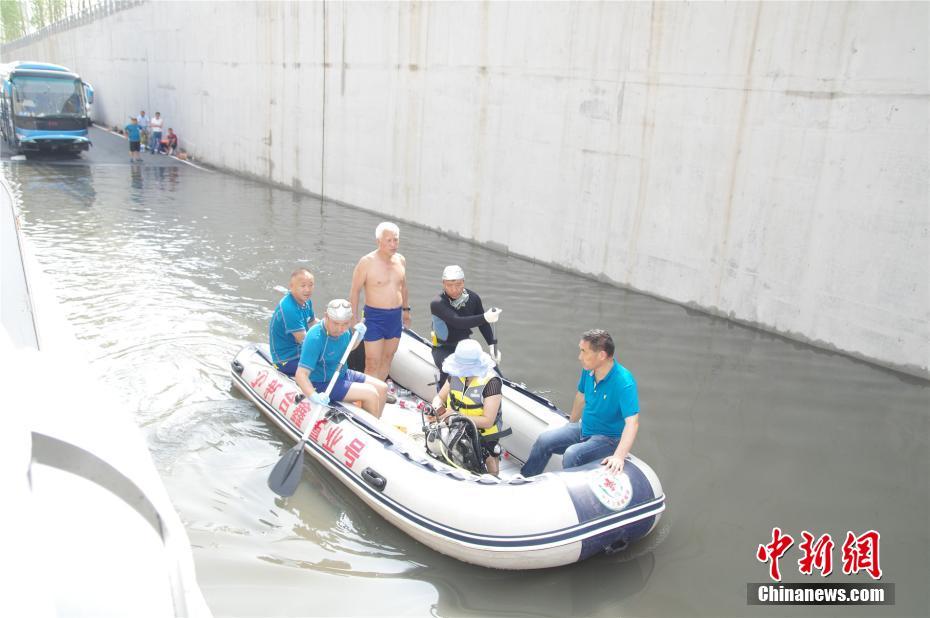 郑州大巴车"搁浅"隧道 "蛙人"潜水救援