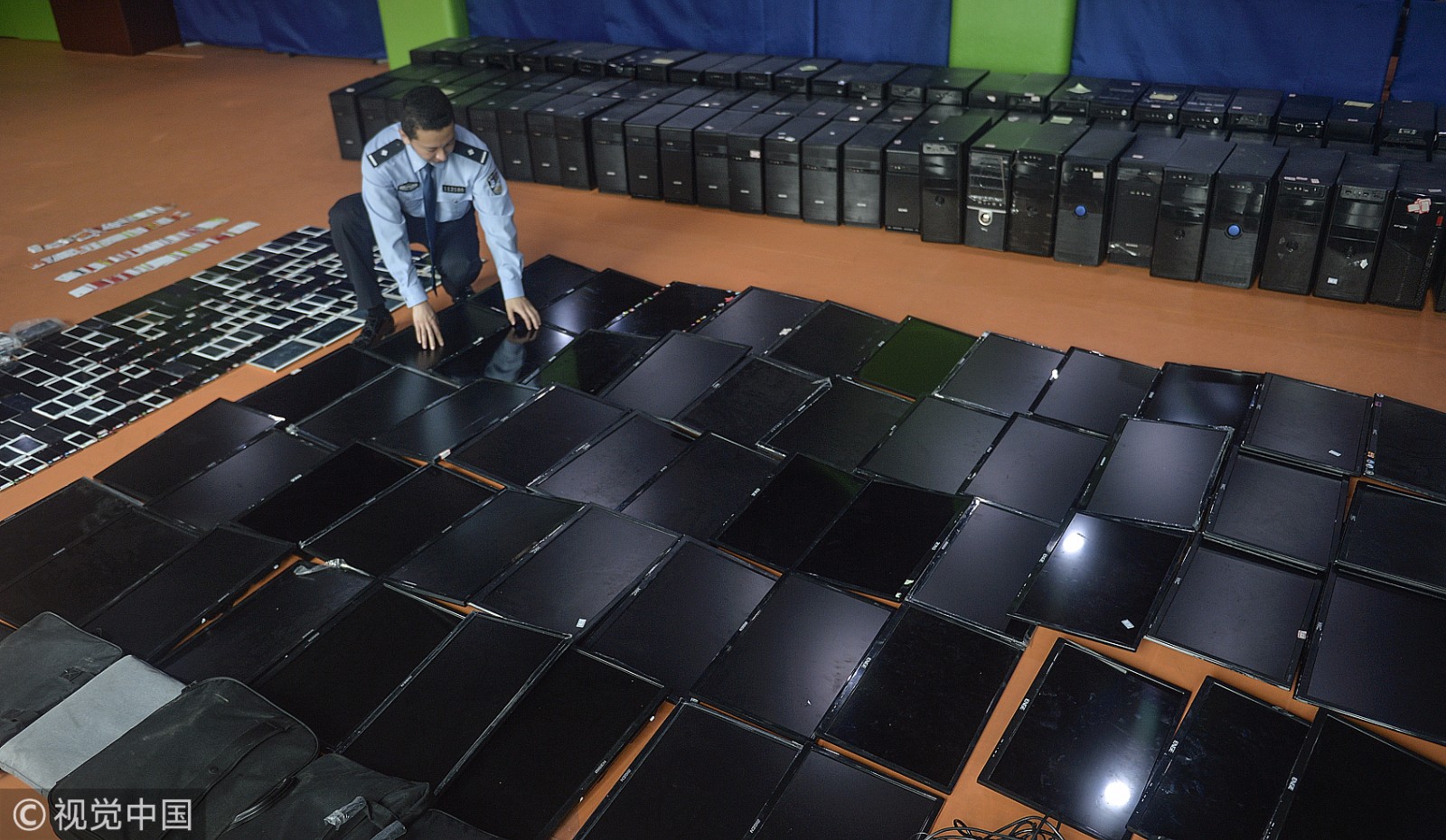 警方破1.2亿元网络诈骗案 涉案物品铺满地