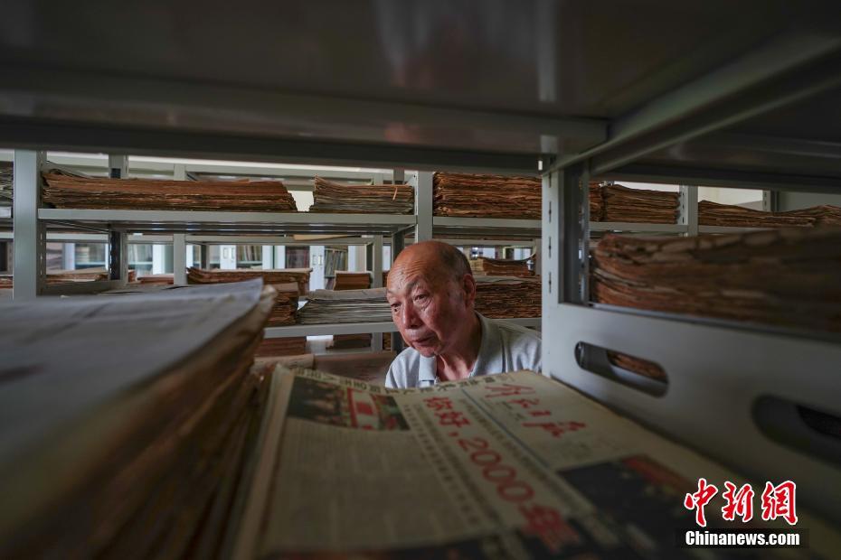 5月17日,贵阳市南明区小山村,75岁的刘玉智在自建的藏报馆内整理报纸。位于贵阳市南明区永乐乡的刘玉智藏报馆,由300平方米的展馆、200平方米的收藏馆和100平方米的仓库组成。刘玉智1963年开始藏报,55年来收集华文报纸5万多种、50多万份,从清末至今,时间跨度百余年,涵盖了政治、军事、经济、文化、商业、工业、体育等各种专题,《国民日报》、《救国报》、《新华日报》、《解放日报》等具有很高收藏价值的报纸,伞报、金报、生肖报、寿报、“中国第一小报”等制作新颖的报纸也陈列其中。中新社记者 贺俊怡 摄