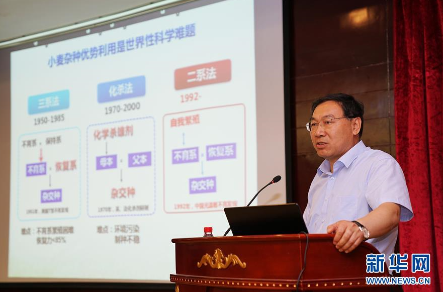 5月17日,北京农林科学院研究员赵昌平在学术研讨会上做报告。当日,全国杂交小麦学术研讨会在河南邓州国家杂交小麦制种基地开幕,全国20多所大学和科研院所的60余名知名专家教授出席研讨会。新华社发(李明放摄)
