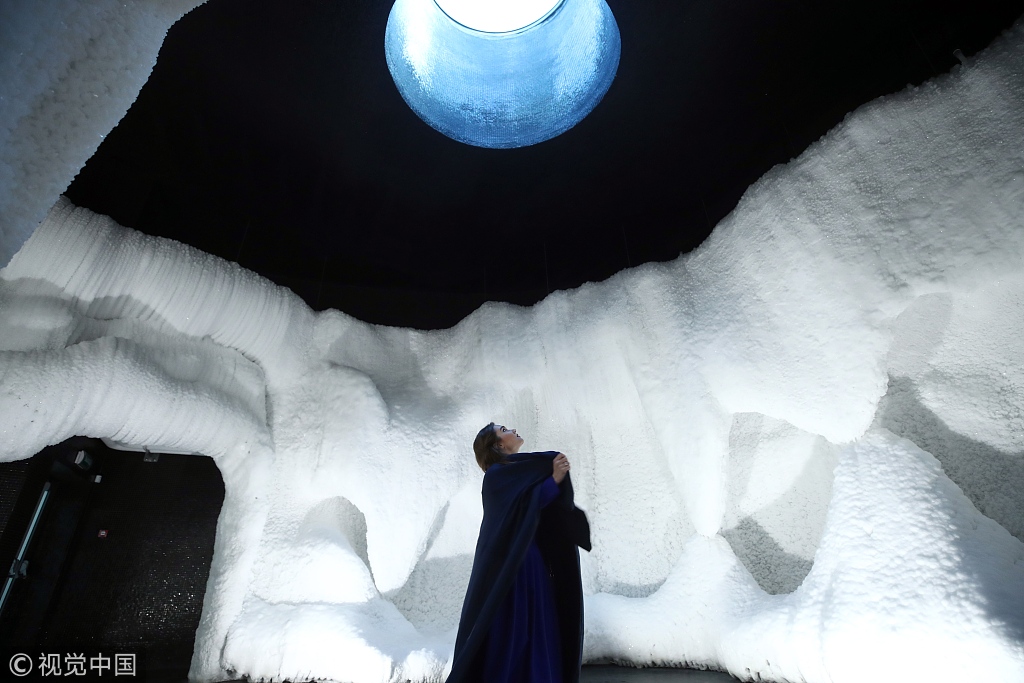 当地时间2018年5月17日,俄罗斯莫斯科,民众参观扎里亚季耶公园的冰洞馆。