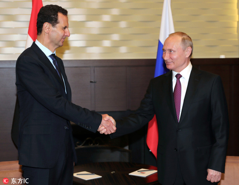 当地时间2018年5月17日,俄罗斯索契,俄罗斯总统普京会见叙利亚总统巴沙尔-阿萨德,双方就推动叙利亚政治进程进行了会谈。