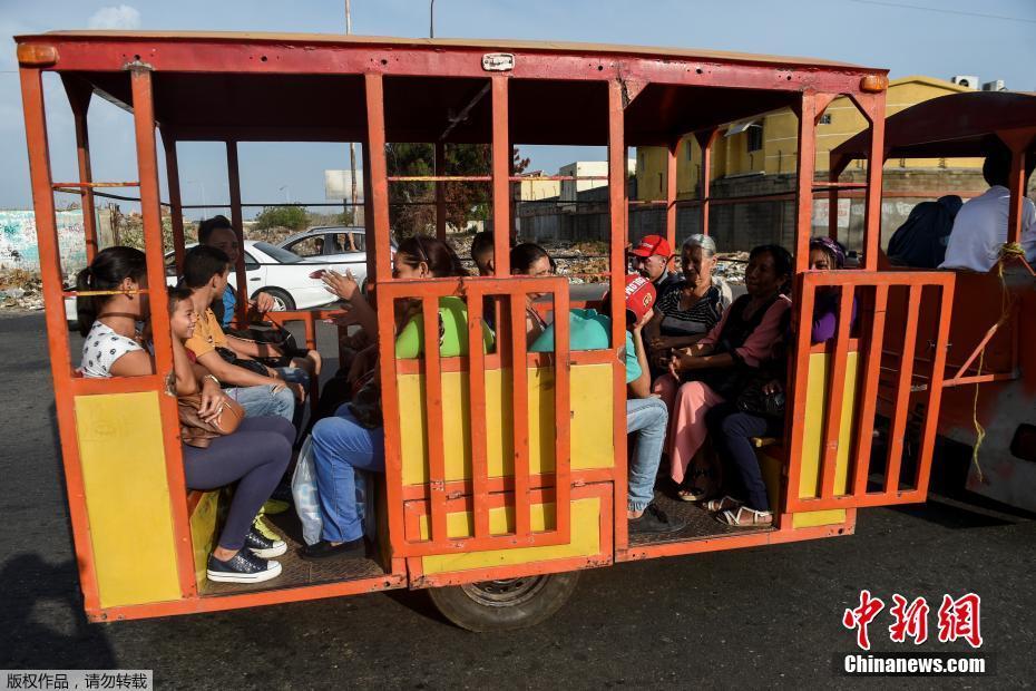 委内瑞拉公交资源匮乏 民众挤游乐小火车出行