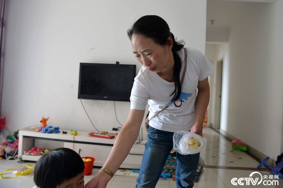 2018年5月14日,四川省成都市西区地标小区,黄大姐一直照顾孩子柔柔却拿不到工资,一说起这事黄大姐就开始哭泣。 成都商报 王勤/视觉中国